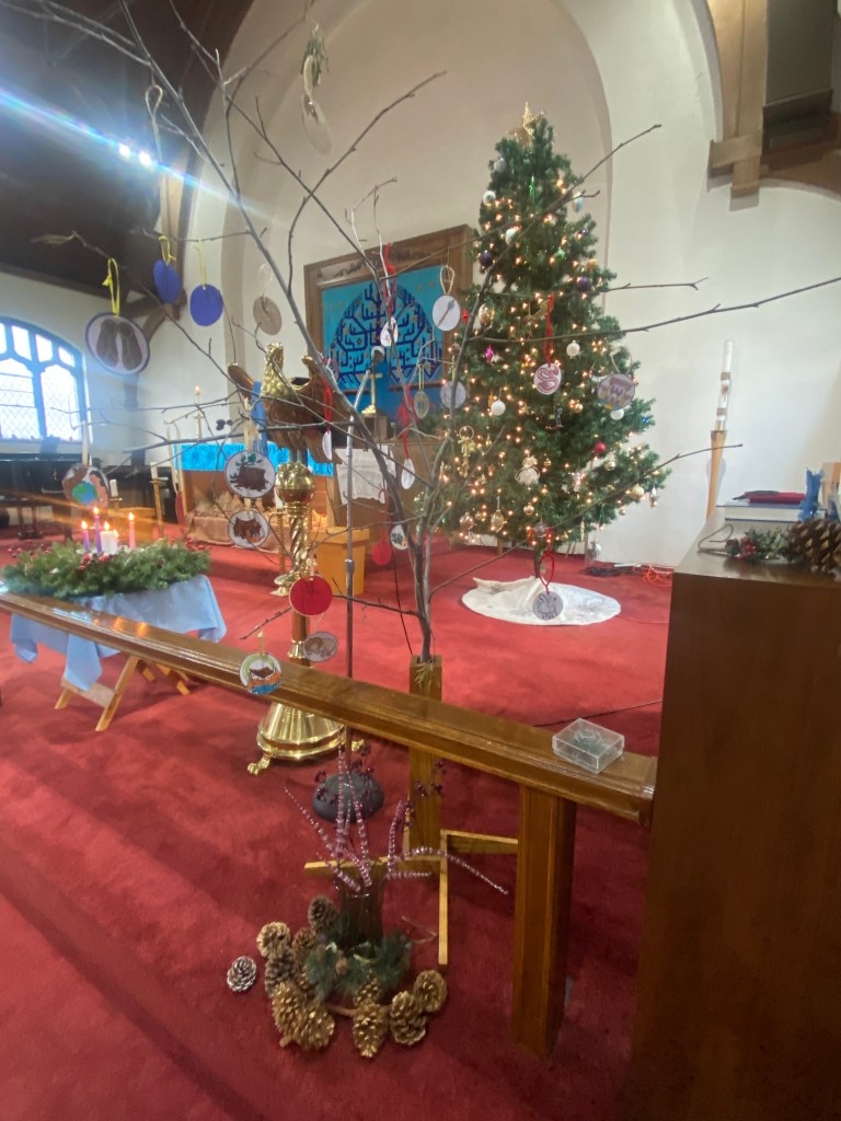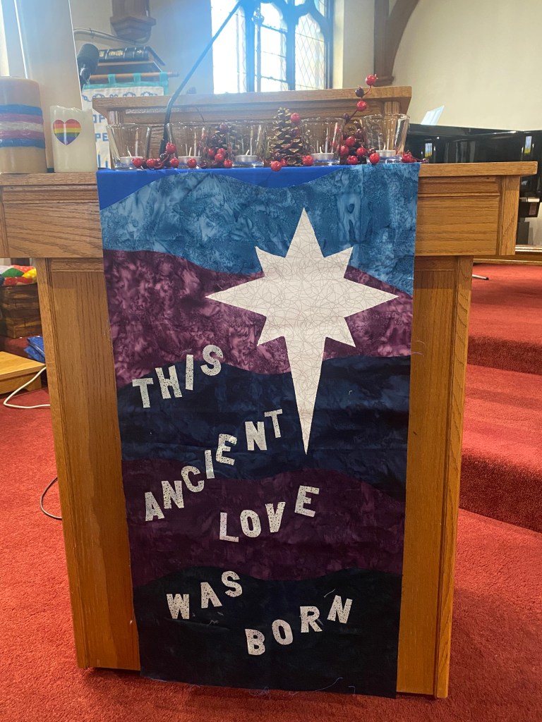 Kathie created a new wall hanging from old liturgical pieces. She also made purses for Linda, Judith and Loretta for their help.